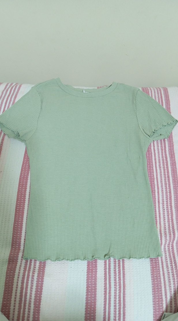 Yeşil Kısa Kollu Fitilli Tişört