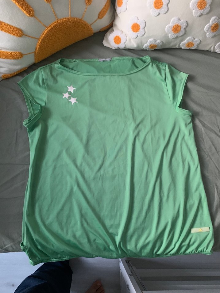 Yeşil renk, kısa kollu hamile tişörtü, bol kesim ve yuvarlak yaka detaylıdır. Yumuşak sentetik kumaştan üretilmiştir, spor ve günlük kullanıma uygundur. beden s veya m