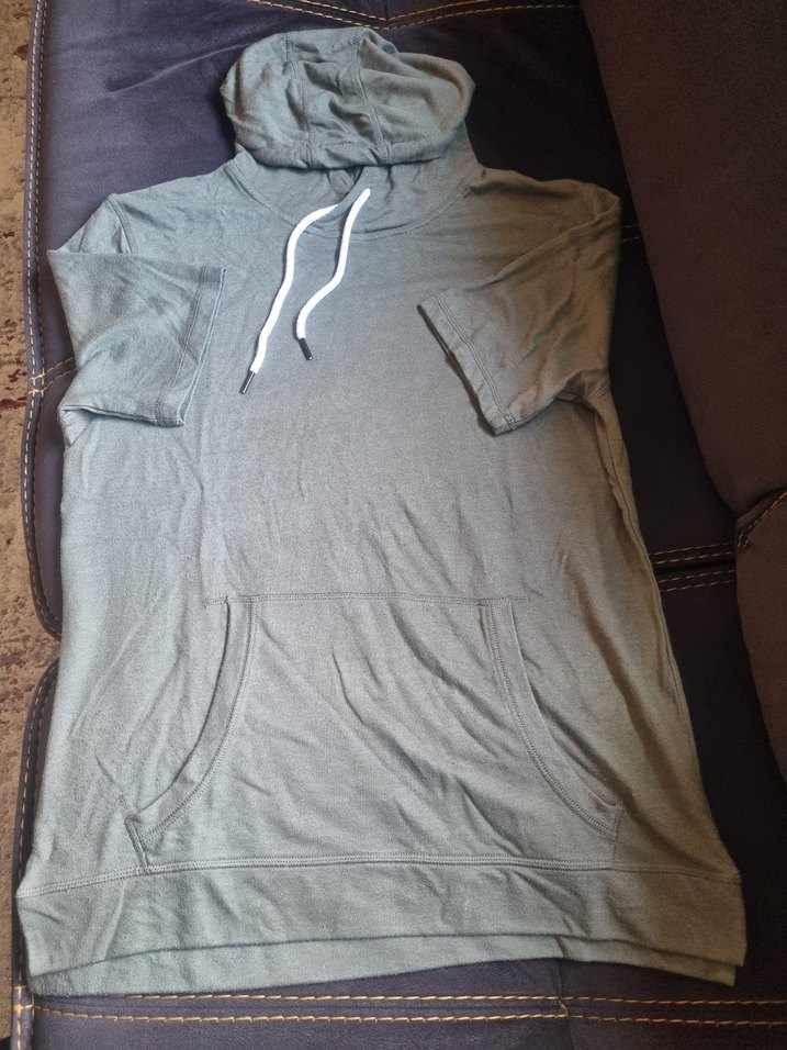 Kısa kollu, kapsonlu ve bol kesim olan bu kadın sweatshirtü trikodan yapılmıştır. yeşil renkte, ön cep detaylı ve günlük kullanıma uygun rahat bir tarza sahiptir.