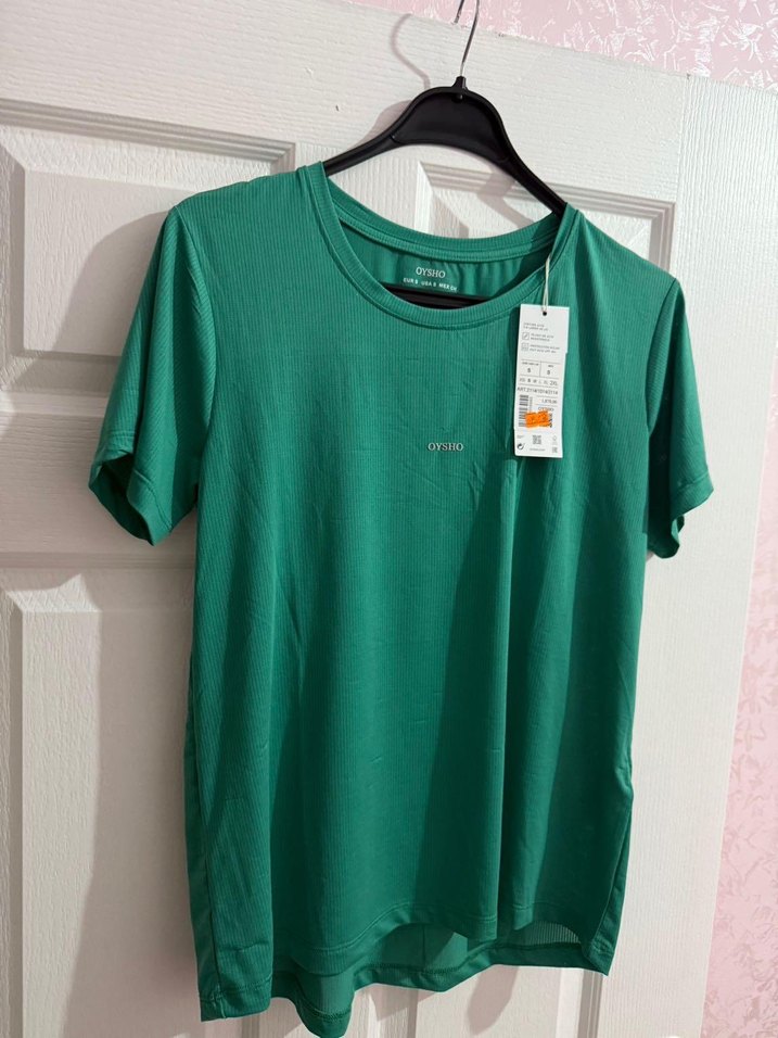 Hafif yeşil renkte, kısa kollu ve yuvarlak yaka kadın tişörtü. Rahat oversize kesimi ve yumuşak sentetik kumaşıyla günlük sokak stili için uygun.