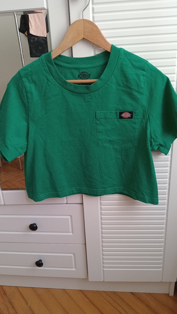 kısa kollu, yuvarlak yaka pamuklu tişört. Koyu yeşil renkte, göğüs cebinde baskılı detaylı, rahat kesim ve sokak stili sunar.
