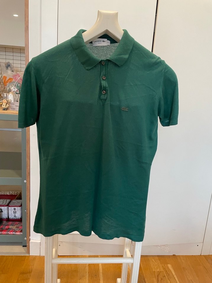 Bu koyu yeşil erkek polo tişört, düğmeli yakası ve kısa kolludur. Nefes alabilen pamuklu kumaştan üretilmiş, bol kesim ve normal uzunluktadır. Günlük rahat sokak stili için uygundur. Ortalama durumda fiyatını uygun tutuyorum