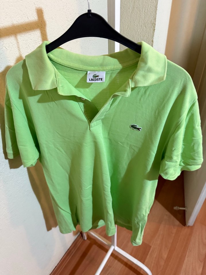 Yeşil kısa kollu polo tişört, yakalı ve bol kesimdir. Yumuşak keten kumaştan üretilmiş olup günlük kullanım için rahat ve şık bir tarza sahiptir.yan tarafa hafif bi lekesi var yüklerken gördüm yıkanınca çıkar mı bilmiyorum