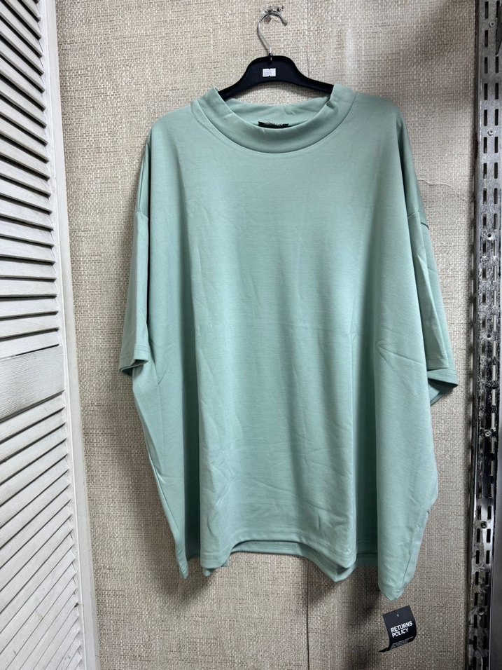 BoohooMAN Pastel yeşil renkte, yuvarlak yakalı ve kısa kollu tişört. Salaş ve kısa boy kesimiyle rahat ve şık bir günlük stil sunar.