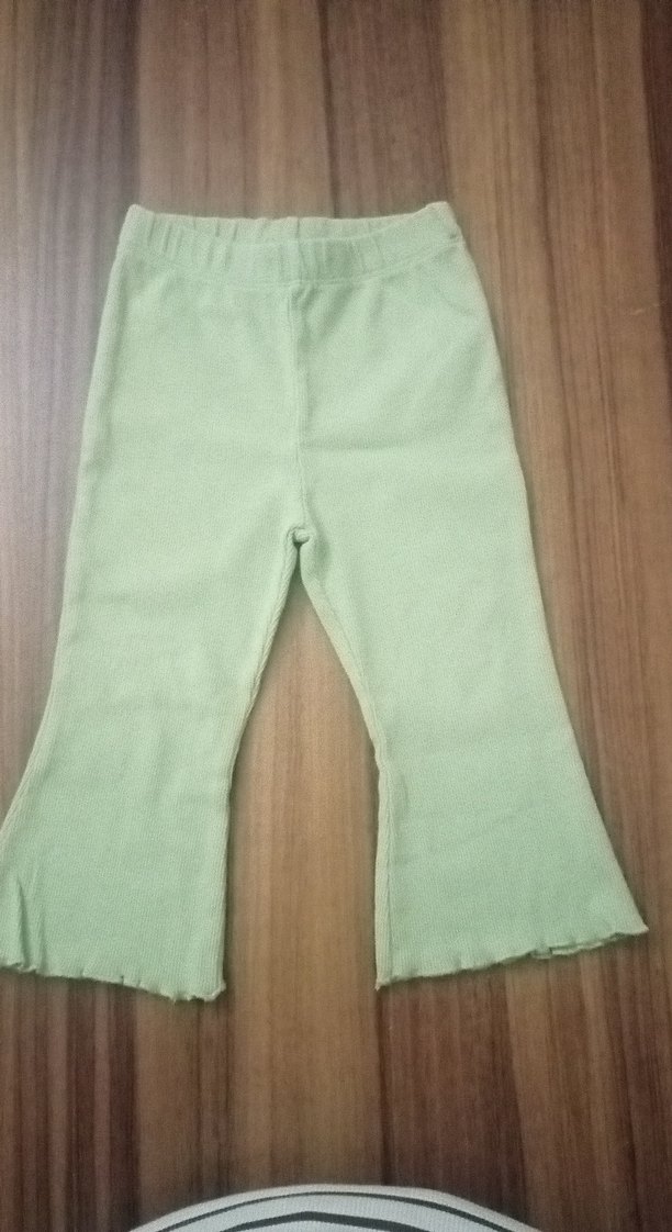 Yeşil renkte, fırfırlı ve rahat kesimli İspanyol paça kız çocuk taytı,