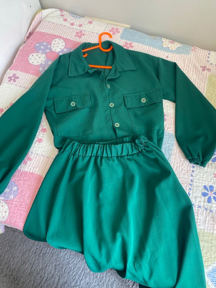 Yeşil, uzun kollu ve düğmeli detaylara sahip. Gevşek kesimi ve notlu yaka tasarımıyla günlük sokak stiline uygun, yumuşak sentetik kumaştan üretilmiştir.