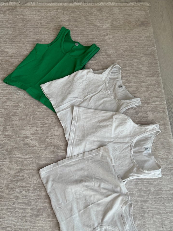 Çocuklar için yeşil keten kolsuz, straplez yakalı ve vücuda oturan atlet, günlük kullanım için sade ve şık görünümlü.