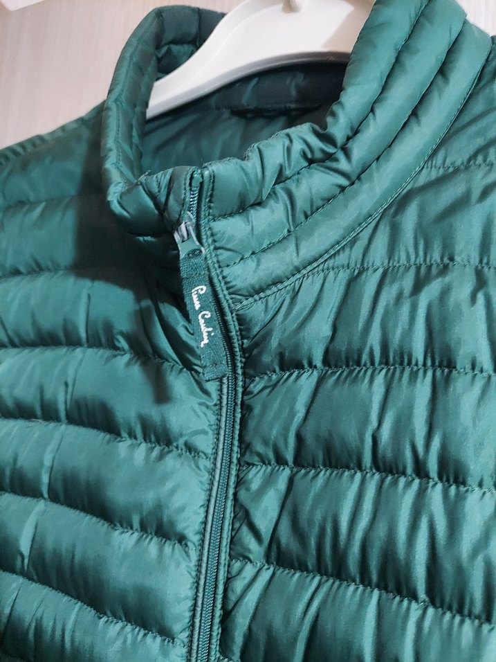Yeşil renkli kumaştan yapılmış, yüksek yakalı Erkek montu. Fermuarlı önü ve dar kesimi ile günlük kullanıma uygundur.