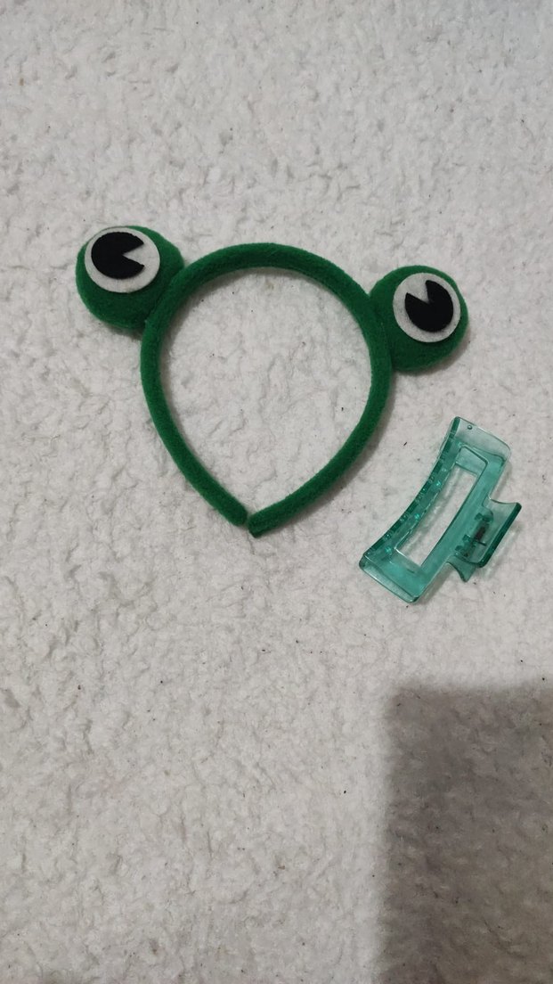 Yeşil kurbağa figürlü çocuk taç ve renkli, kolay kullanımlı cırt cırtlı toka seti. Trendy çocuklar için uygundur.