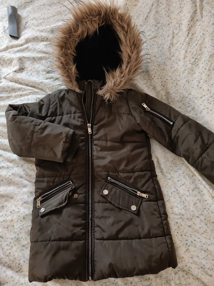 Yeşil kürklü kapüşonlu ve kesimi vücuda oturan kız montu. Yumuşak, sıcak kumaştan, fermuarlı cepleri ve sokak tarzı görünümüyle dikkat çekiyor.