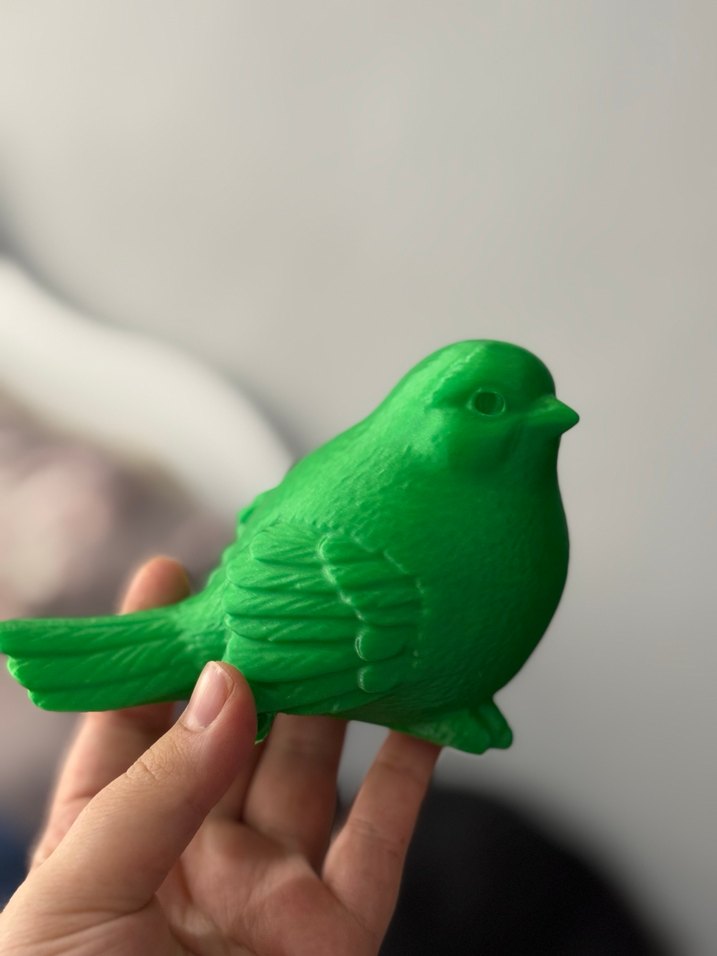 Detaylı tüy dokusuna sahip renkli yeşil kuş figürü, dekorasyon için uygundur.
