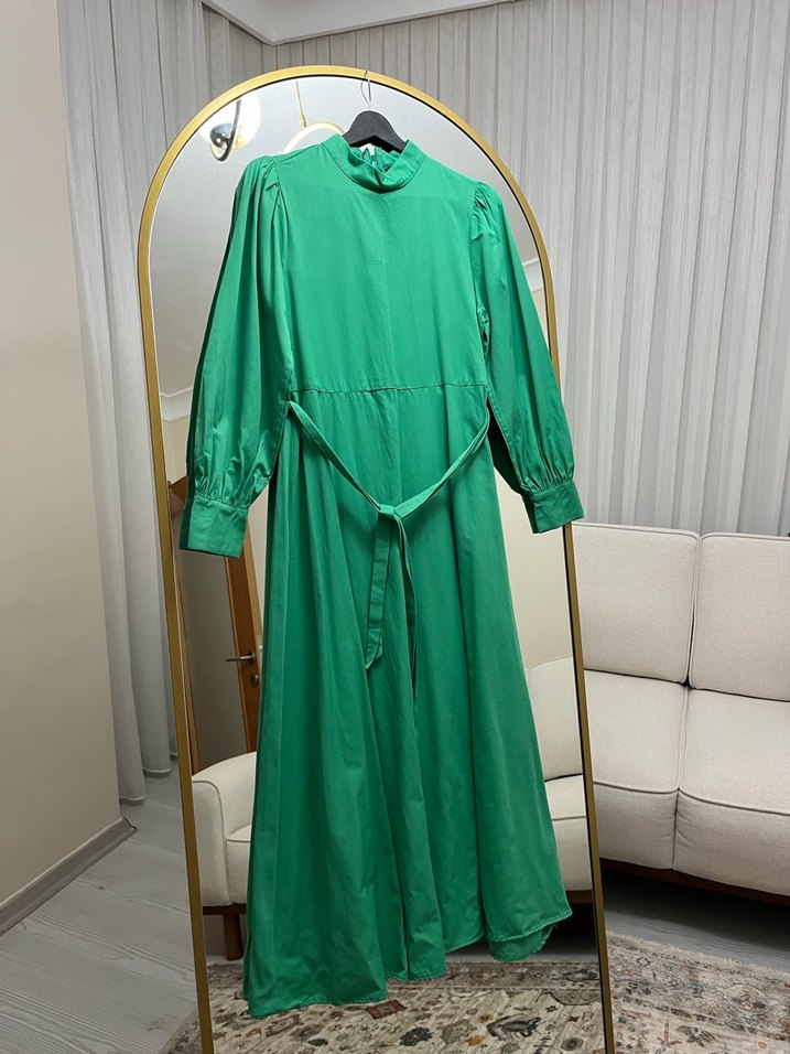 Yeşil Kuşaklı Uzun Kadın Elbise