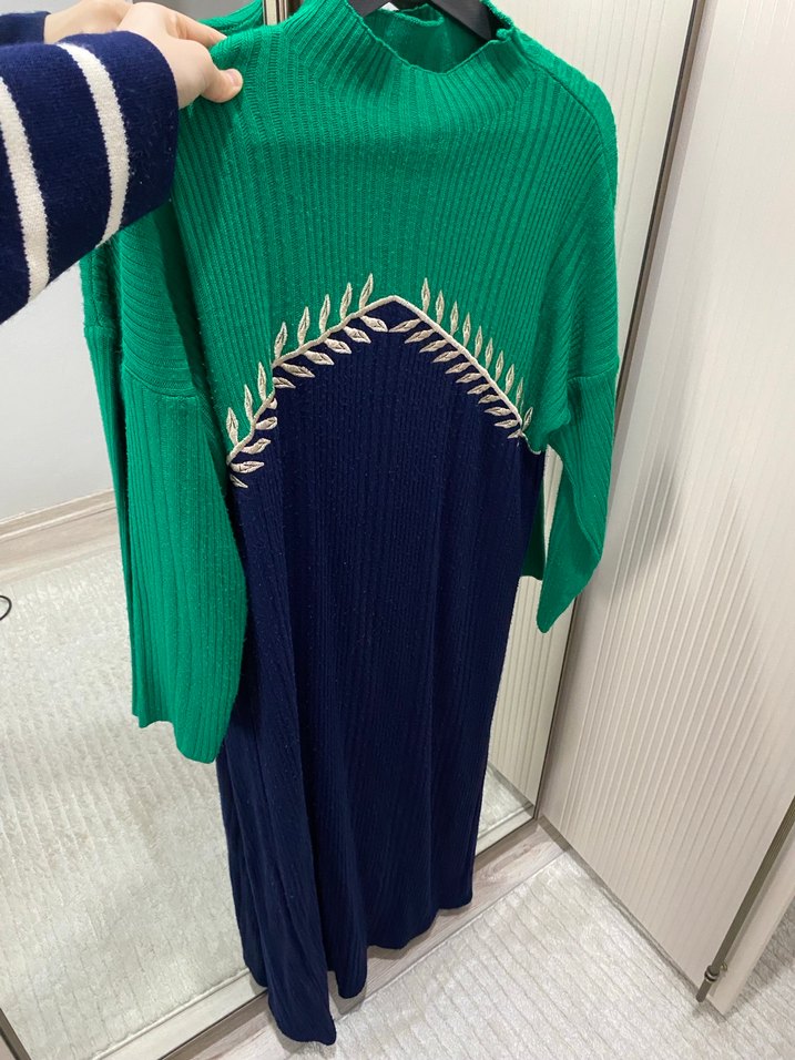 Üst kısmı yeşil, alt kısmı lacivert renkli triko elbise. Standart bedendir, esnek yapısı sayesinde rahat bir kullanım sunar. • Günlük kullanım için çok uygun • Şık ama aynı zamanda rahat bir model • Triko kumaşı kaliteli ve tok duruşlu • Gün içinde uzun süre rahatlıkla kullanılabilir • Çok az kullanılmış, kondisyonu çok iyi Hem spor hem de günlük şık kombinler için ideal bir parça