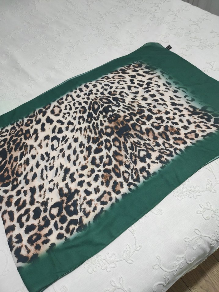 Sentetik kumaştan lleopar desenli yeşil renkli bohem tarzı kadın şal#armine#şal#vakko#piercardin