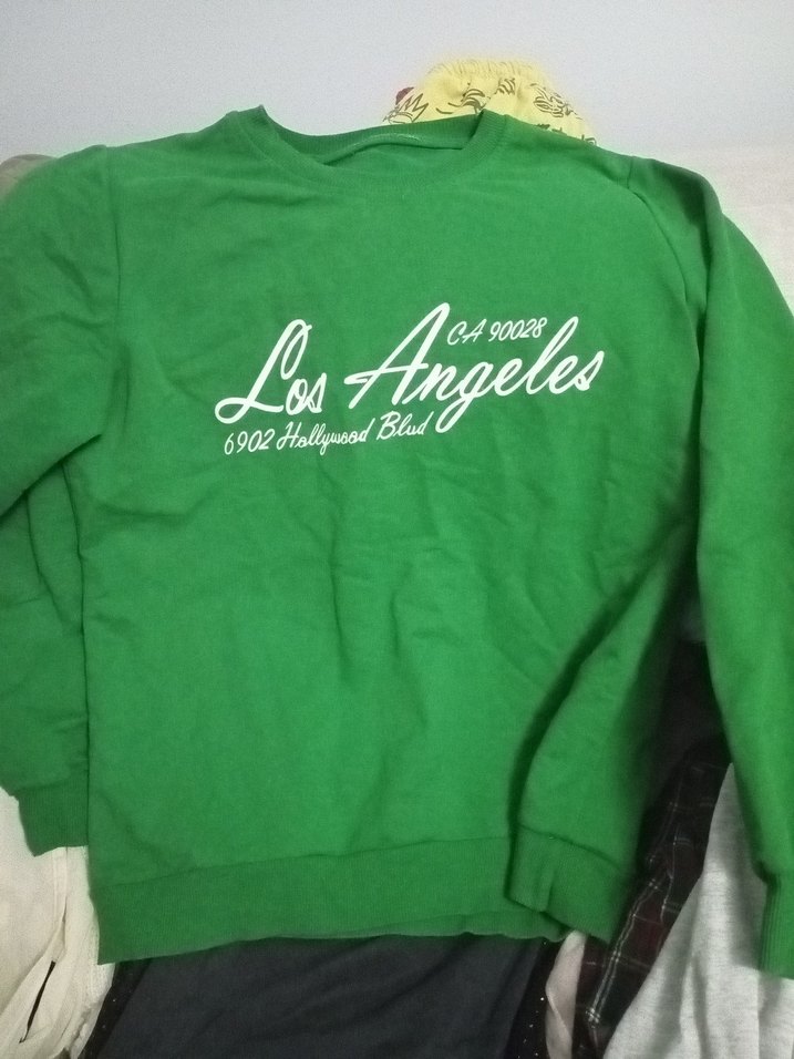 Bu yeşil sweatshirt uzun kollu, bisiklet yaka ve bol kesimdir. Önünde Los Angeles baskısı vardır, yumuşak ve sıcak kumaştan üretilmiştir, rahat kullanıma uygundur.