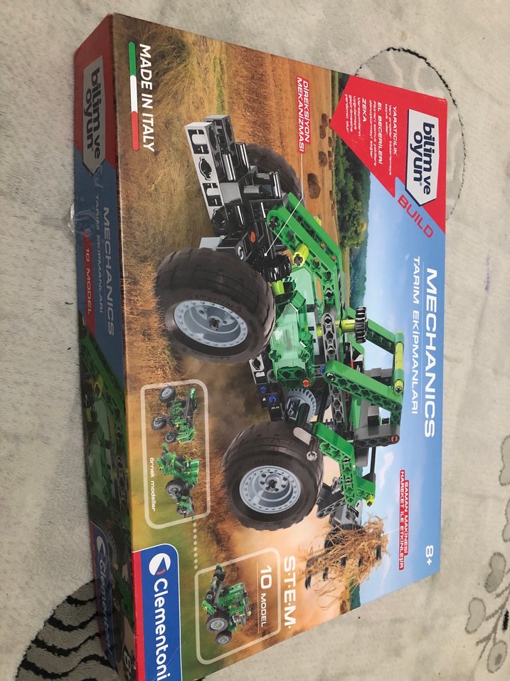 Clementoni tarafından üretilen yeşil mekanik Lego seti, 10 model içerir ve STEM öğrenimini destekler. İtalya yapımıdır. ️parçalar tamama sokerker turuncu olanlardan kırıklar var yine takılıyor