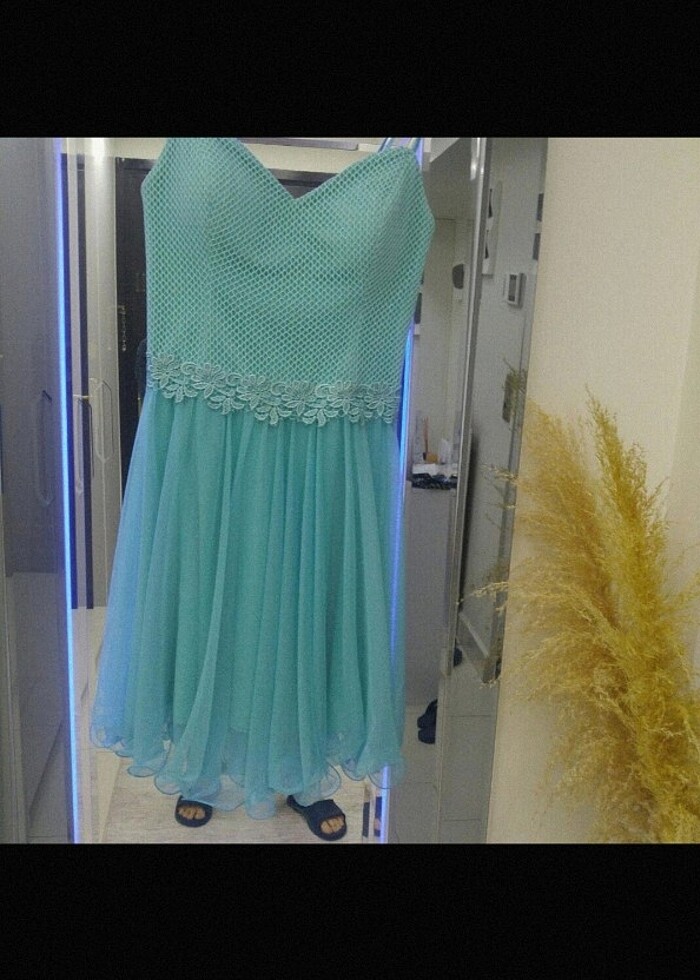 İzmir derya moda evinin ürünü kızım mezuniyetine 1 gece giydi yeni gibi duruyor kusursuz 2 beden yazıyor 38 40 uyumlu