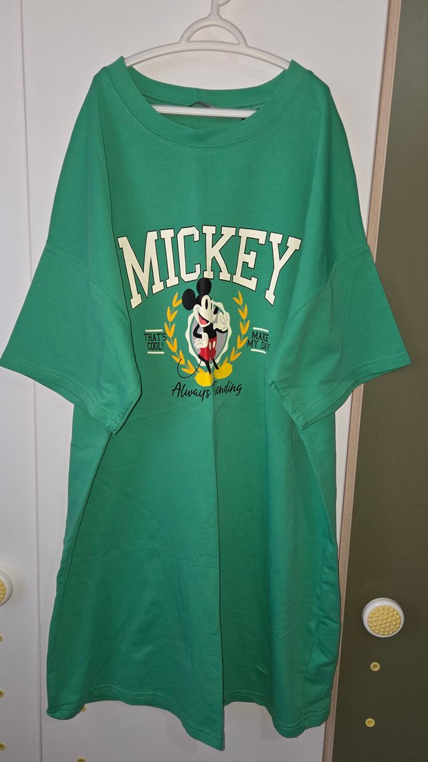 Yeşil renkte, kısa kollu ve yuvarlak yakalı hamile tişörtü. Bol kesim ve parlak Mickey baskılı, spor tarzına uygun rahat bir model. ♀️ Boy 85cm L beden