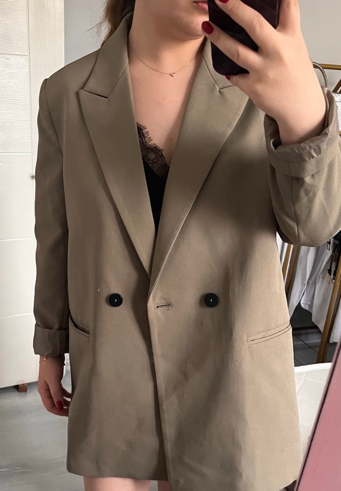 Uzun kollu, yeşil midi uzunlukta blazer ceket. Notch yakalı, rahat kesim, günlük kullanıma uygun şık bir parça. Oldukça oversize bi ceket.