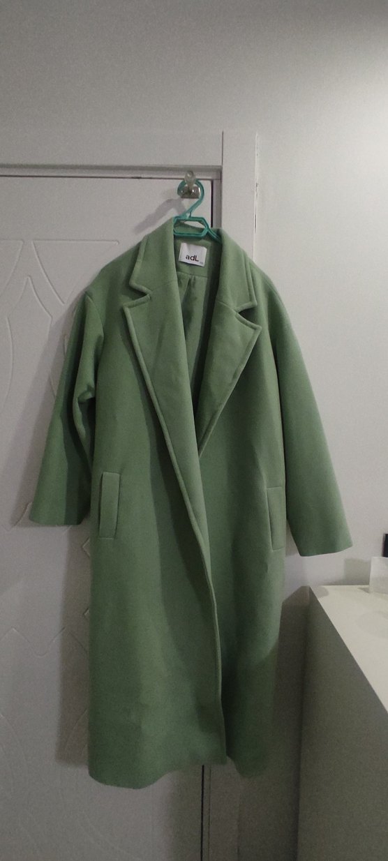 Yeşil renkte midi uzunlukta, notched lapel yakalı ve uzun kollu kadın kabanı. Düzenli kesim ve minimalist, desensiz tasarıma sahip, zahmetsiz şıklık sunar. Günlük kullanım için uygundur. 2 kere kullanildi hicbirskintisi yoktur