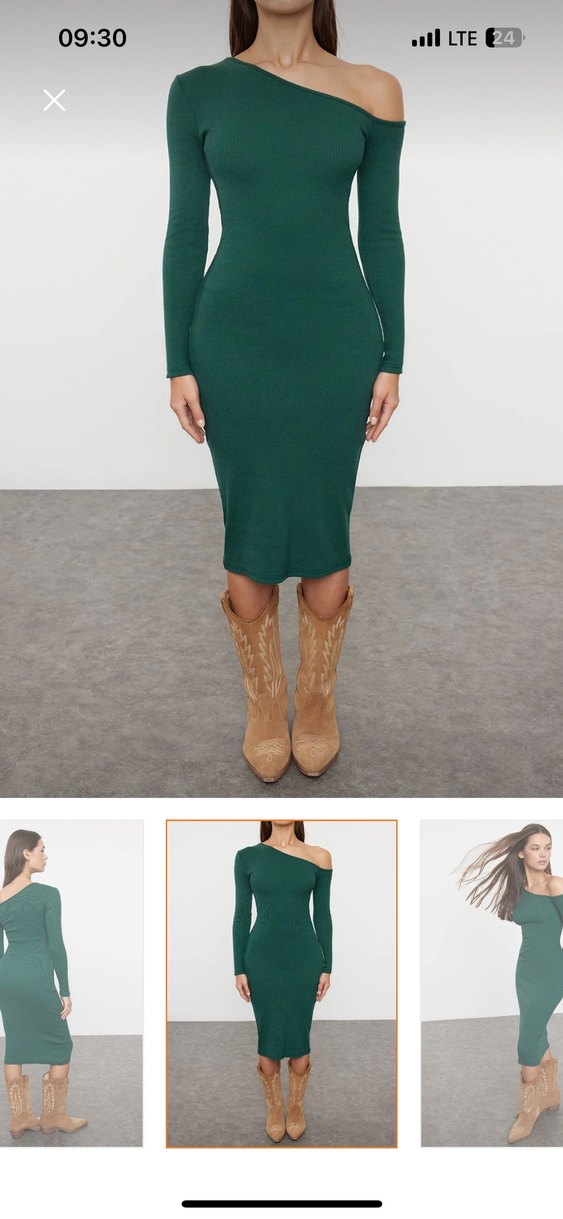 Yeşil midi elbise, v yaka ve askılı kollu, modern ve şık bir görünüm sunar. Ürünü hiç giymedim fakat etiketi yok kusursuz