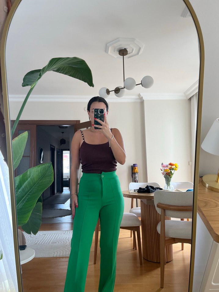Yeşil Midi Kumaş Kadın Pantolon