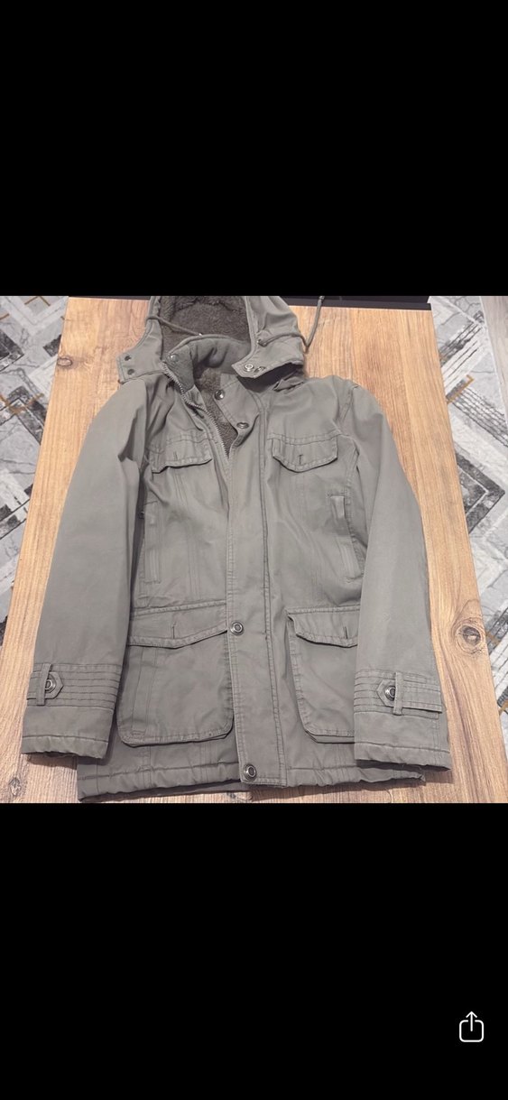 Yeşil renkli erkek mont, düğmeli ve normal kesimdir. Yumuşak ve sıcak kumaştan, uzun kollu ve çok ceplidir. Outdoor ve street style için uygundur. 152 cm’dir