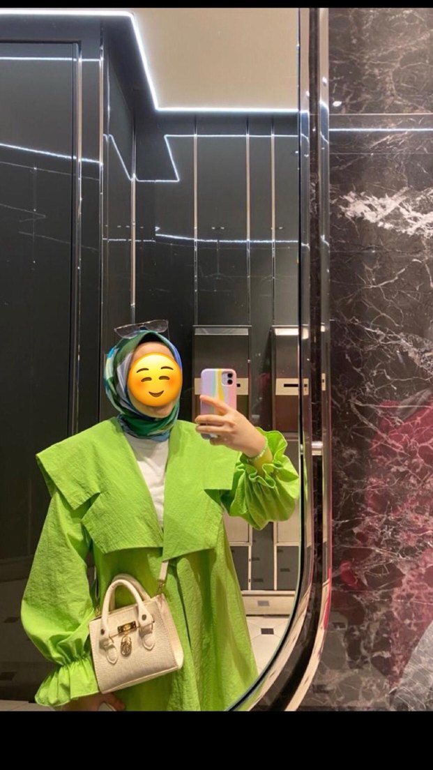 Uzun kollu, yüksek yakalı, yeşil midi yağmurluk