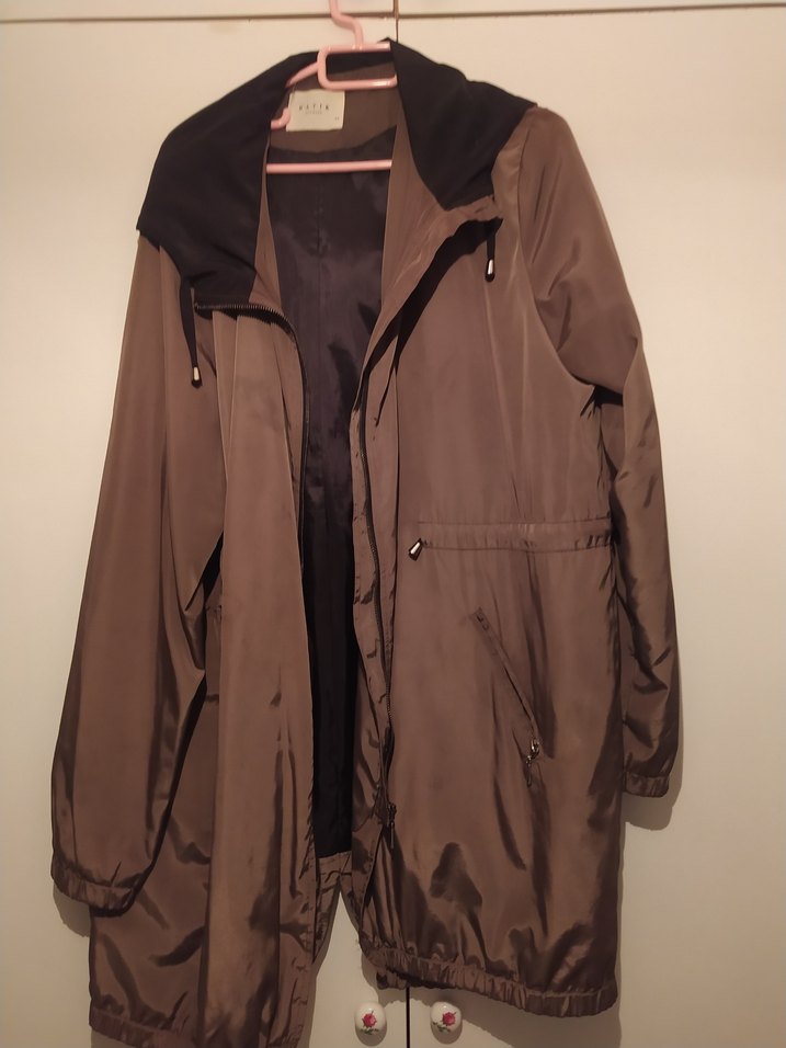 yesil midi uzunlukta, bel kemerli, notched lapel yakalı, uzun kollu, saten dokulu trenchcoat. Rahat kesim, günlük sokak stili için uygun.