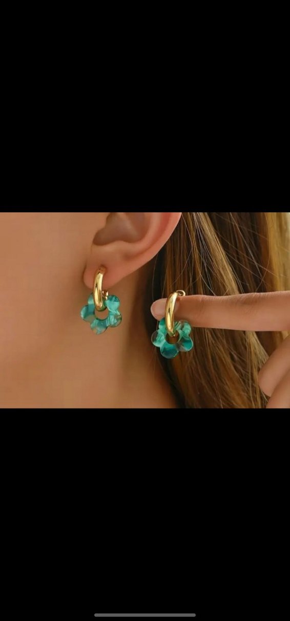 mini halka küpeler, çiçek desenli ve bohem tarzda. Pastel renkleriyle günlük kullanıma uygun.
