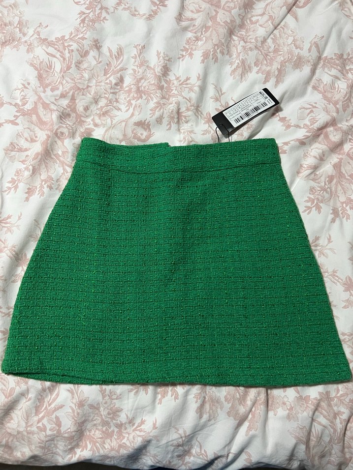 Yeşil renkte, yumuşak sentetik kumaştan yapılmış, fırfırlı ve vücuda oturan mini etek. Pastel tonu ve sade stili günlük kullanıma uygundur.