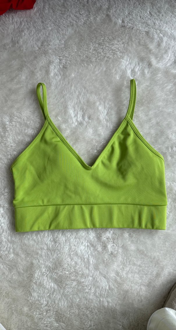 İnce askılı, yumuşak dokulu yeşil mini spor sütyeni, athleisure ve streetwear tarzlarına uygun.