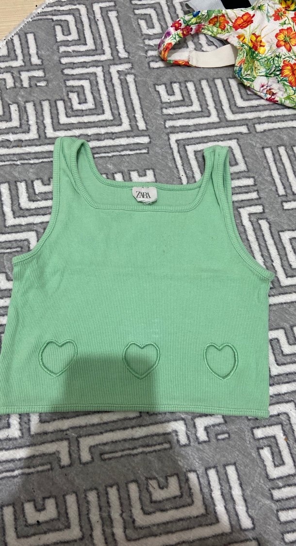 Bu yeşil mini triko atlet, ince kesimi ve yuvarlak yaka tasarımıyla dikkat çeker. Alt kısmındaki kalp detayları, günlük kullanıma uygun şık bir görünüm sunar.