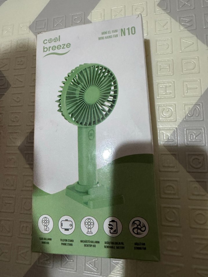 Yeşil mini taşınabilir vantilatör, USB şarjlı ve tek tuşla kolay kullanım sağlar. ️