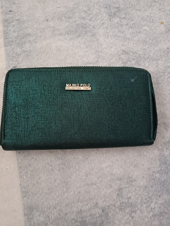 Yeşil renkte, fermuarlı ve sentetik kumaştan üretilmiş modern klasik tarzda kadın cüzdanı. Günlük kullanıma uygundur.