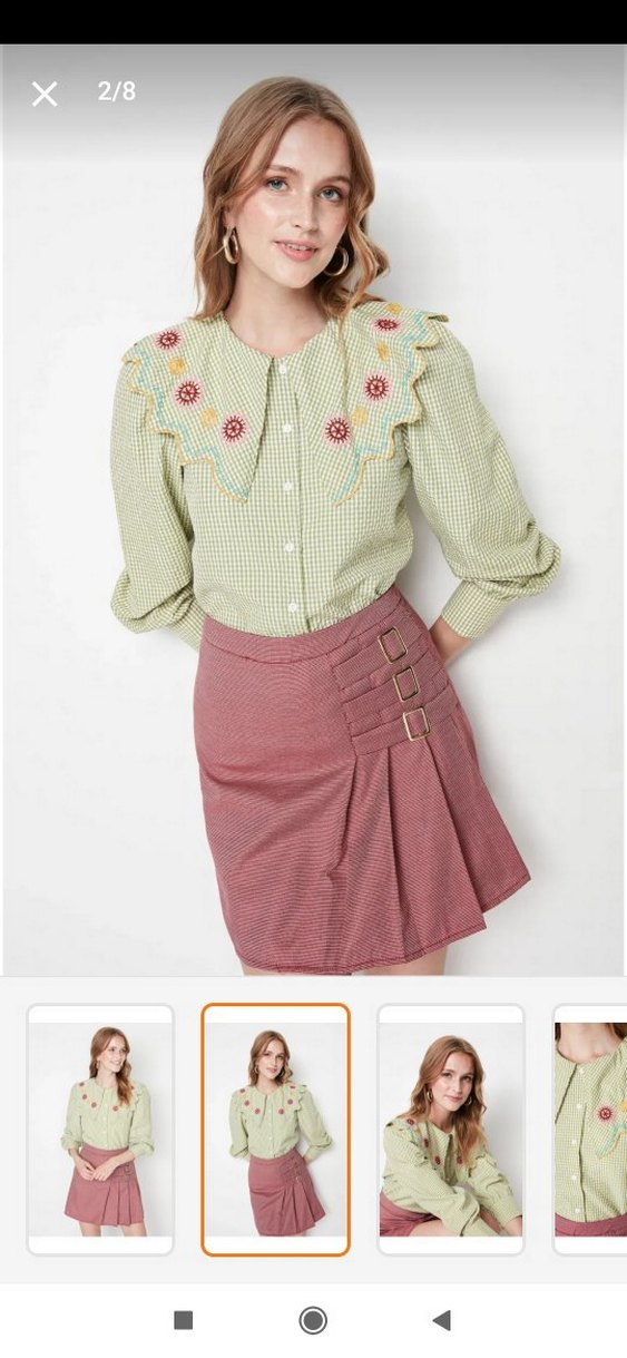 yeşil nakış detaylı gofre kumaş dokuma gömlek rahat ve şık iki kere tek giyilmiş temiz kullanışlı