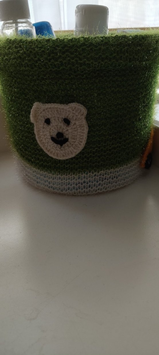 Yeşil renkte, renkli nakışlı ayı desenli bebek sepeti Yumuşak ve rahat dokusu ile bebekler için uygundur.