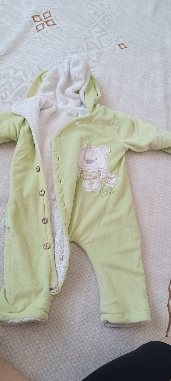 Pastel yeşil renkte, nakışlı ayıcık detaylı bebek tulumu. Yumuşak ve sıcak kumaştan, düğmeli kapanışlıdır. çok dar olmasını istiyor iseniz 6 9 aylık bebeğe daha uyumlu olur yeni gibi bir iki kere kullandık sayılır
