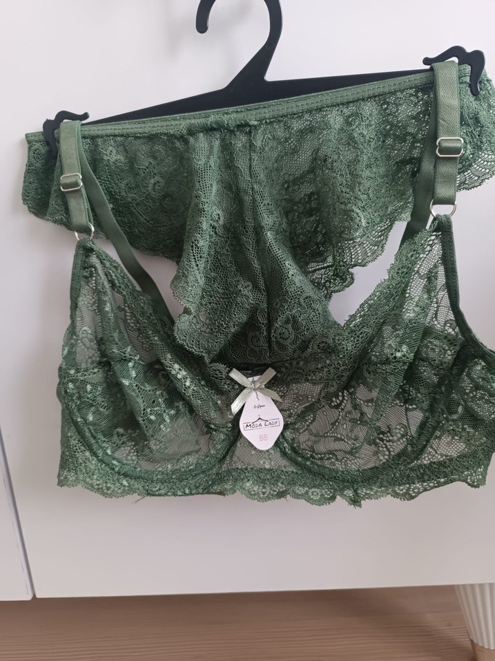 Koyu yeşil nakışlı, kısa mini uzunlukta, bohem tarzda ve Paris etkili sütyen.