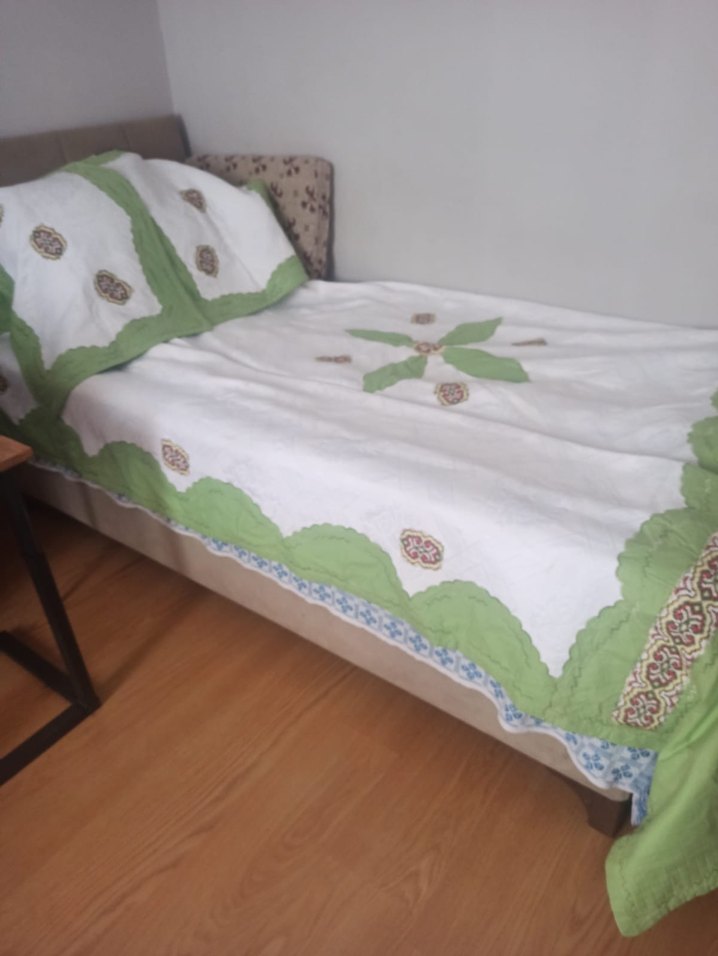 Yeşil Nakışlı El Emeği Yatak Örtüsü Takımı