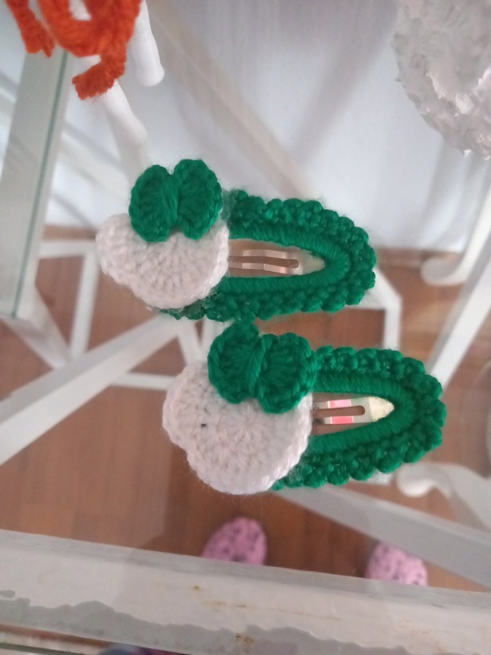 Yeşil Nakışlı Örgü Çocuk Toka Seti