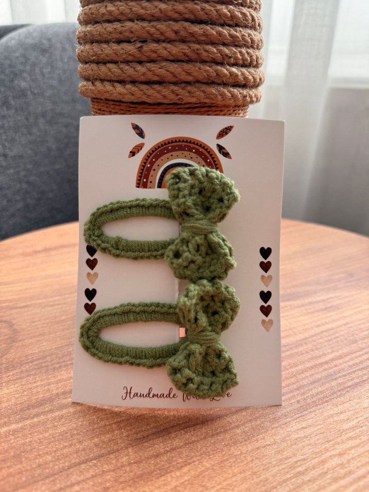 El emeği örgü kız çocuk tokası 2li olarak sipariş alınır..