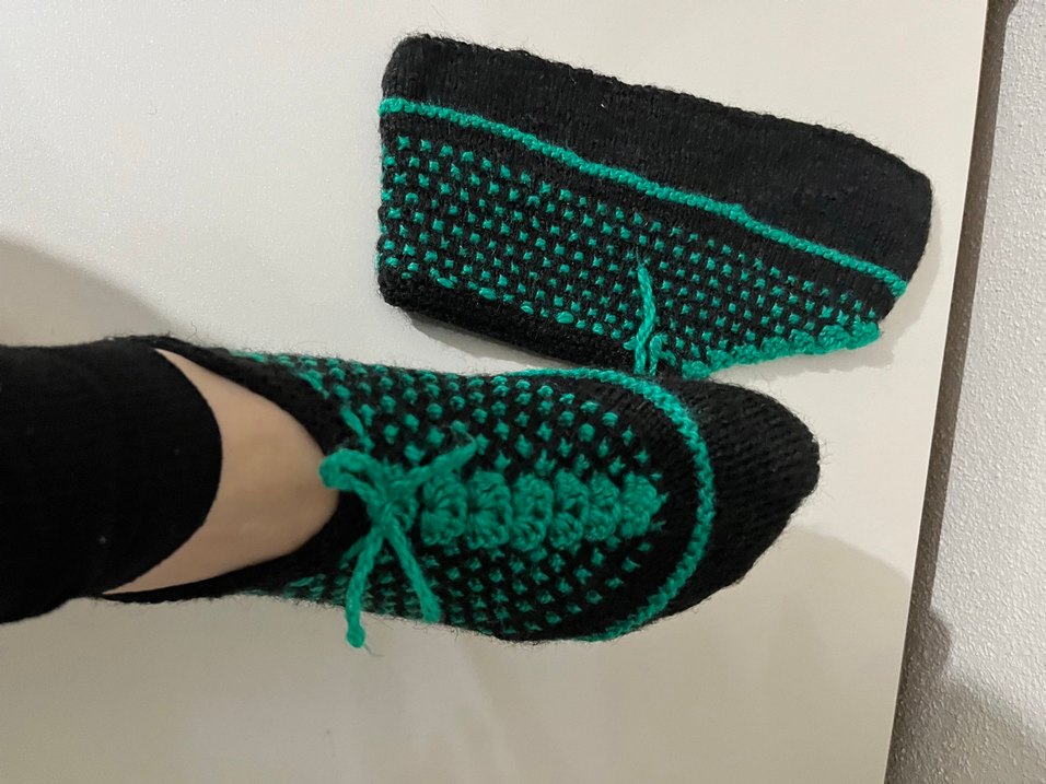 Yeşil Nakışlı Örgü Kadın patik