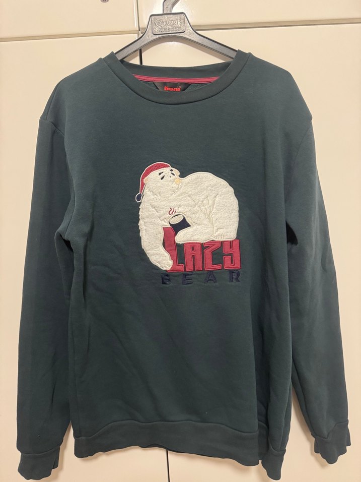 , yuvarlak yaka ve uzun kollu sweatshirt. Yumuşak kumaştan, rahat kesimli ve nakışlı baskılı tasarıma sahip. Sokak stiline uygun, günlük kullanım için ideal. Kom un orjinal urunudur.Sadece yikandi kullanilmadi.Kom un yilbasi serisi olarak geçmektedir.İki koltuk arası 54,boy 71 cm