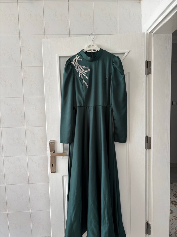 Yeşil Nakışlı Uzun Kollu Uzun Abiye Elbise Pazarlık payı vardır