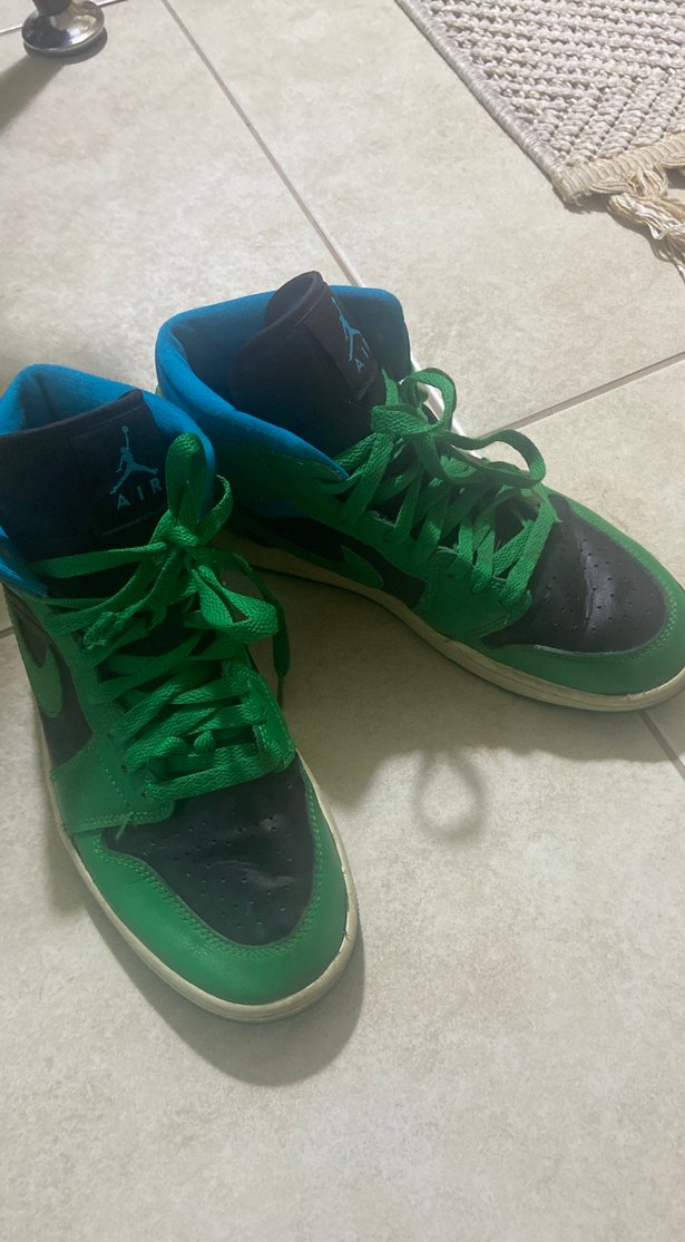 Yeşil Nike Air Jordan basketbol ayakkabısı, kauçuk tabanlı ve cırt cırtlı, sportif sokak stili için uygundur. Trendy günlük kullanım için ideal.