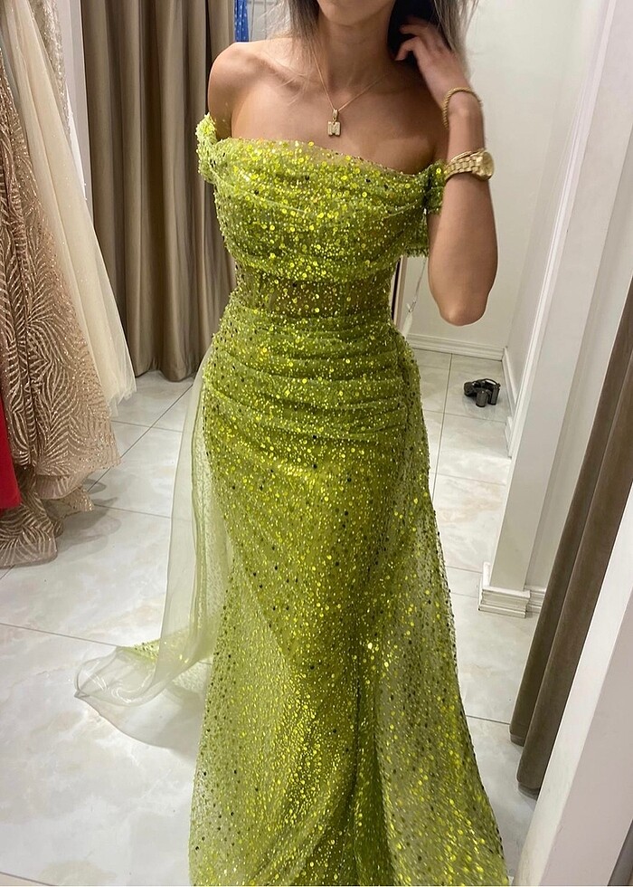 Yeşil nişan elbisesi