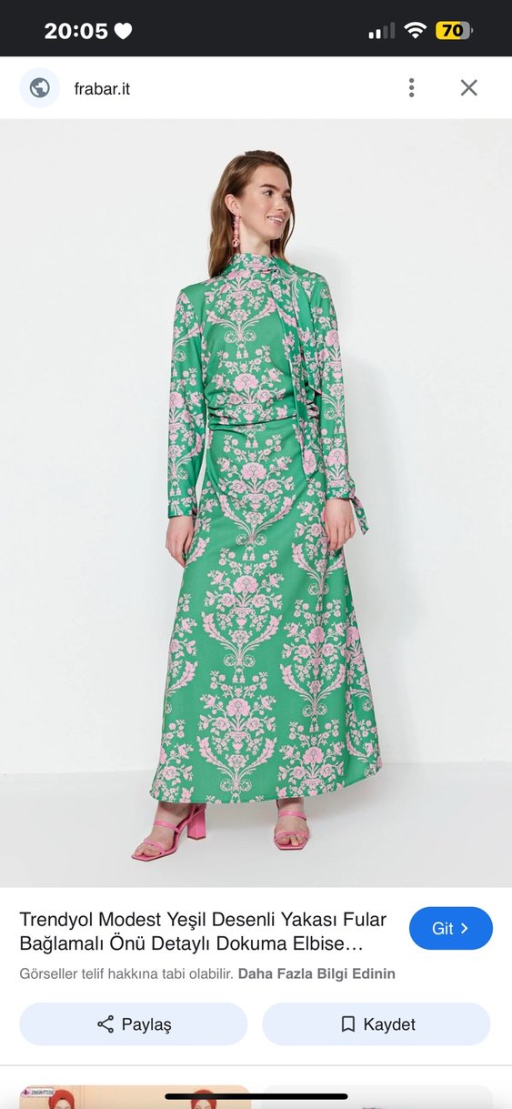 Yeşil önü fular bağlamalı elbise