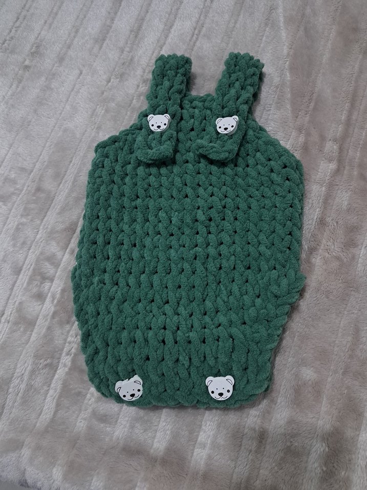 Yeşil örgü bebek slopet yumuşak ve yunlu dokusuyla küçük ayı şeklinde düğmeler içerir. kisiye özel yapılır