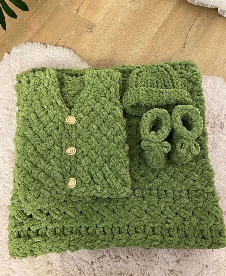 Renkli yeşil örgü bebek takımı yumuşacık pamuk gibi ipiyle birlikte muhteşem bir görünüş elde edebilirsiniz